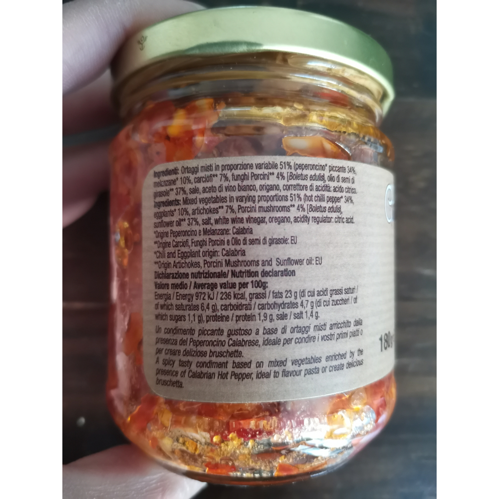 Een heerlijke pittige kruidenbom,op basis van een mix van groenten verrijkt met de chilipepers uit Calabrië, zuid-Italië.