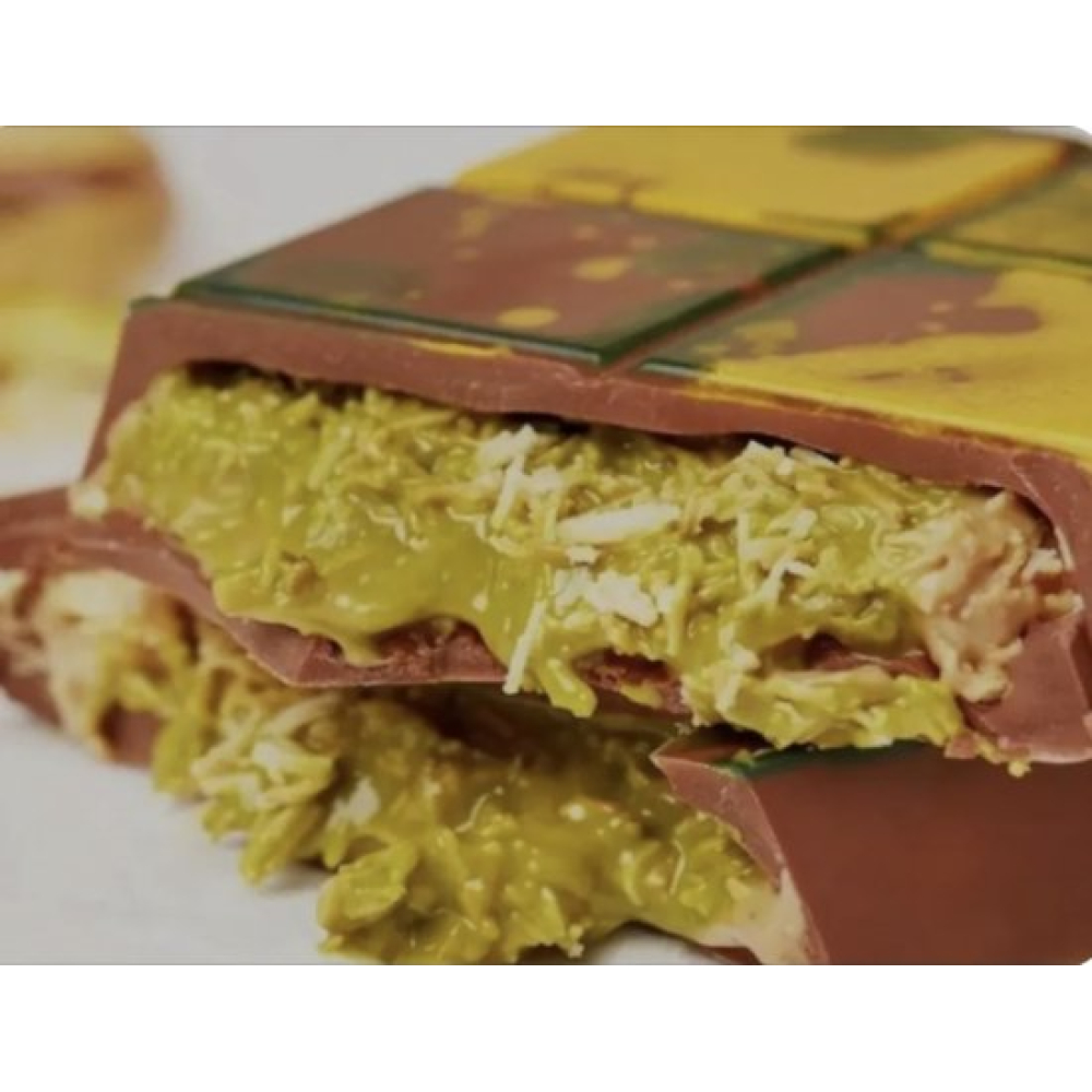 Pistache 45%, suiker, melkpoeder, olijfolie extra vergine, zonnebloemolie, kokosolie, cacaoboter, zonnebloem lecithine.